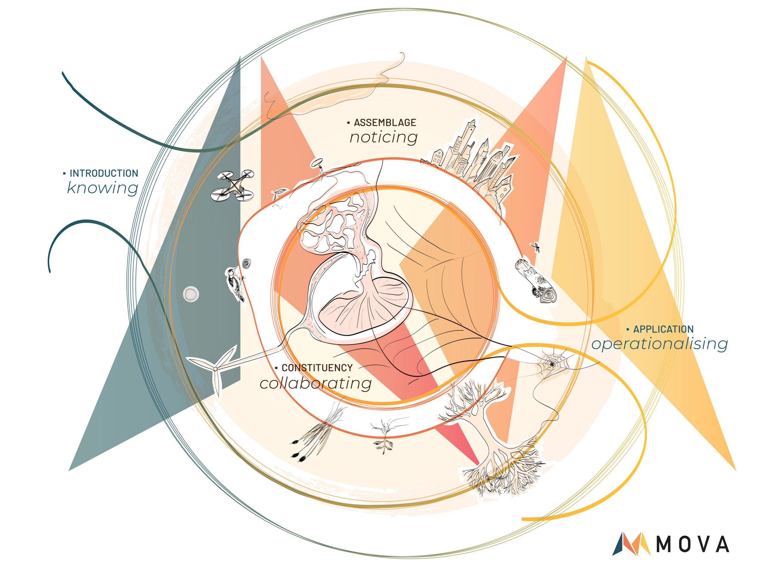 Upon entering this new world to create a design, we need to investigate and understand the assemblage, which is the entangled web of all humans, more-than-human fellow beings and more-than-human things that are part of the design space.
